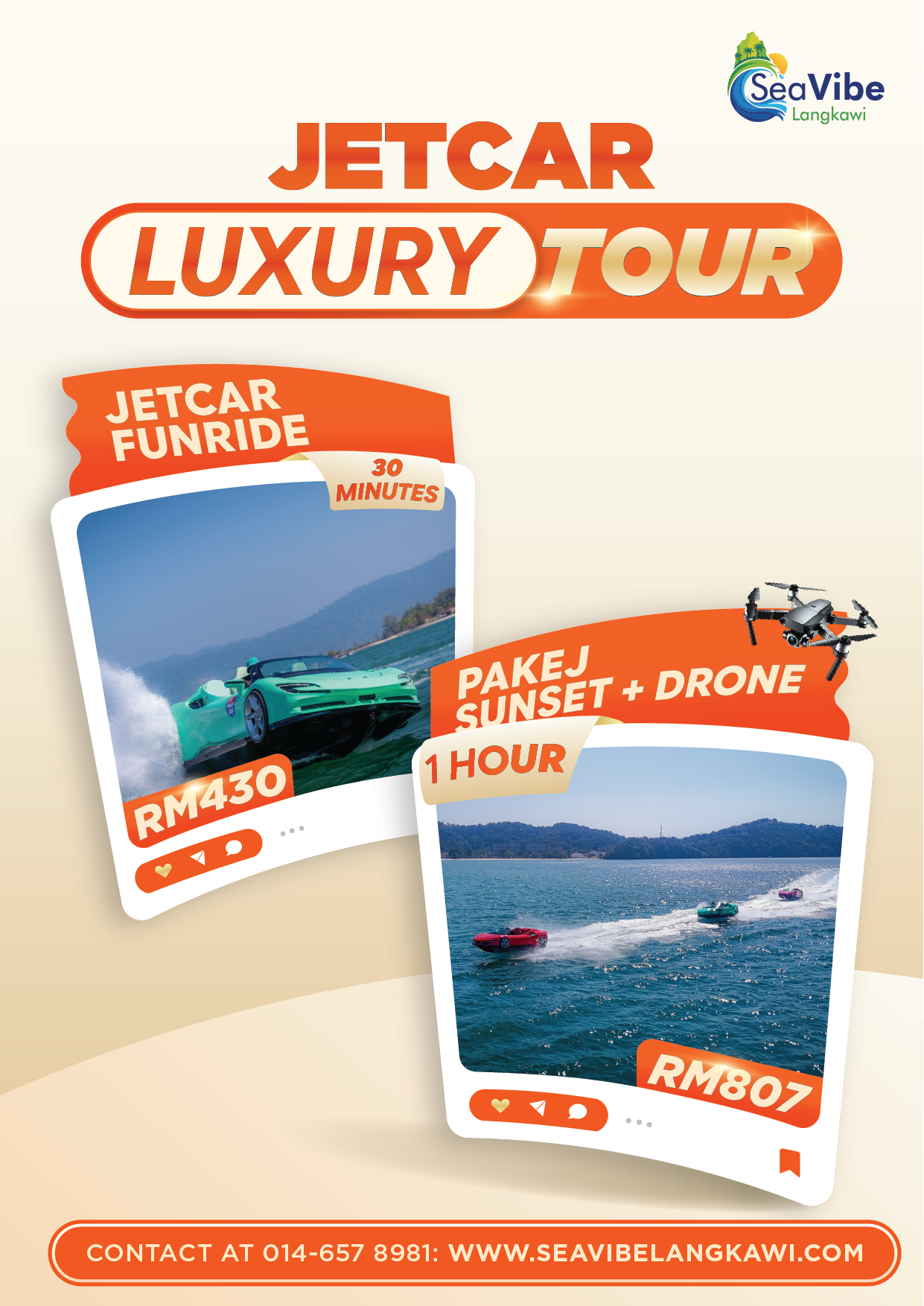 Experience the best of Langkawi with thrilling water sports, scenic boat tours, and hidden natural wonders. From adrenaline-pumping jet ski rides and high-speed Jet Car adventures to peaceful island hopping and stunning sunset cruises, every journey promises memories that last a lifetime. Discover the beauty, culture, and excitement that make Langkawi truly unique.